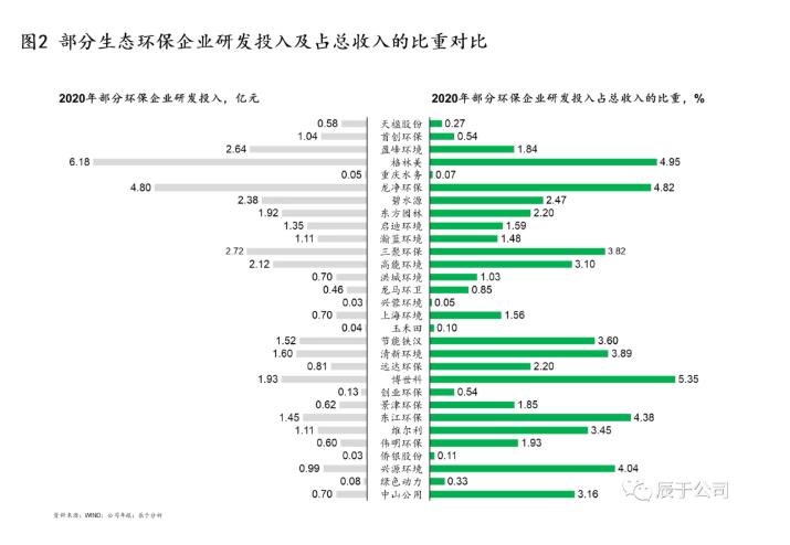 造成以上問題的原因很多,主要有兩個(gè):一是國內(nèi)生態(tài)環(huán)保行業(yè)之前一直處于簡單、粗暴的“跑馬圈地”時(shí)代,強(qiáng)政府關(guān)系和低成本融資成為這一階段企業(yè)制勝的“不二法寶”,這種“浮躁”的大環(huán)境導(dǎo)致很多企業(yè)“重投建、輕技運(yùn)”;二是創(chuàng)新型和革新型技術(shù)投入周期長,回報(bào)不明顯,很多企業(yè)尤其是三年任期制下的國企高層們?nèi)狈ψ銐蚰托?,容錯(cuò)機(jī)制缺失也讓他們對(duì)高風(fēng)險(xiǎn)的研發(fā)投入持謹(jǐn)慎態(tài)度,這從生態(tài)環(huán)保領(lǐng)域的上市企業(yè)的研發(fā)投入占收入的比重可見一斑(見圖2)。