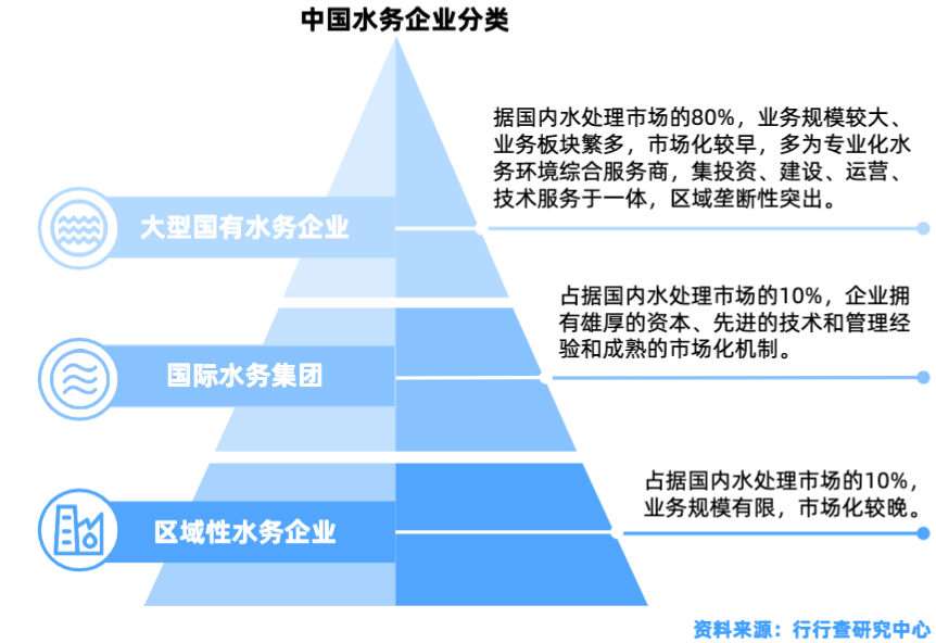 大型國有水務企業(yè)、國際水務集團以及區(qū)域性水務企業(yè)成為水處理行業(yè)的主要競爭者。