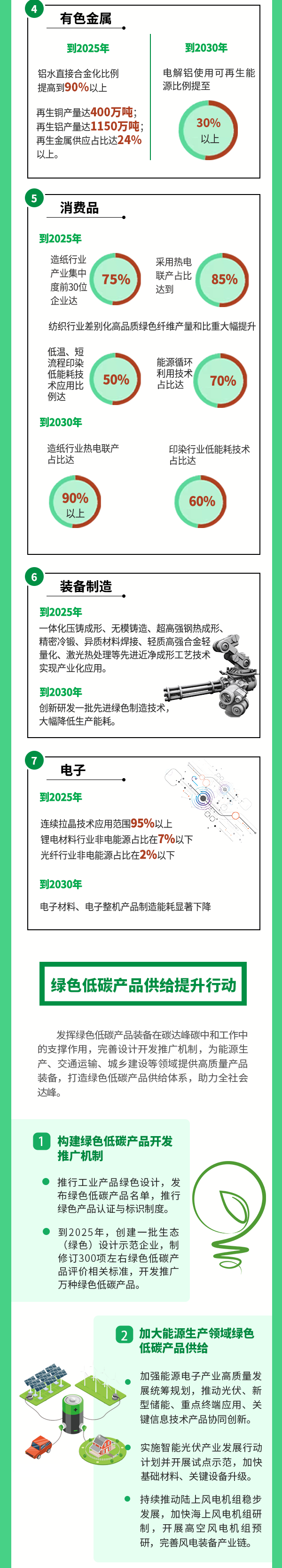 工業(yè)和信息化部、國家發(fā)展改革委、生態(tài)環(huán)境部印發(fā)《工業(yè)領(lǐng)域碳達(dá)峰實(shí)施方案》(以下簡稱《方案》),其中提出,“十四五”期間,產(chǎn)業(yè)結(jié)構(gòu)與用能結(jié)構(gòu)優(yōu)化取得積極進(jìn)展,能源資源利用效率大幅提升,建成一批綠色工廠和綠色工業(yè)園區(qū),研發(fā)、示范、推廣一批減排效果顯著的低碳零碳負(fù)碳技術(shù)工藝裝備產(chǎn)品,筑牢工業(yè)領(lǐng)域碳達(dá)峰基礎(chǔ)。